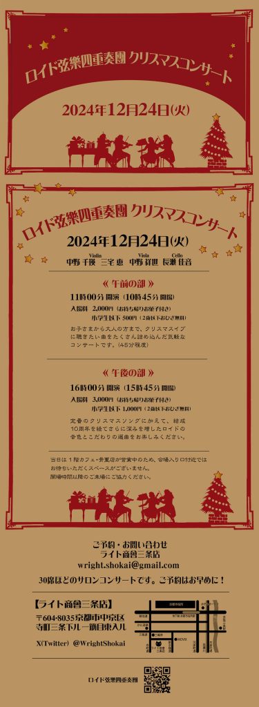 午後の部はいつものザ・ロイド・クリスマス⭐定番のクリスマスソングに加えて、結成10周年を経てさらに深みを増したロイドの音色とこだわりの選曲をお楽しみください!♥盛り沢山で、一捻りあるコンサート。じっくり聴いていただけると嬉しいです🥰